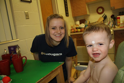 Dyeing Easter eggs. Owen LOVED this! Hopefully next year he'll get to do it on his own instead of just watching. Mommy didn't want to deal with scrubbing dye off of him and his high chair. :)